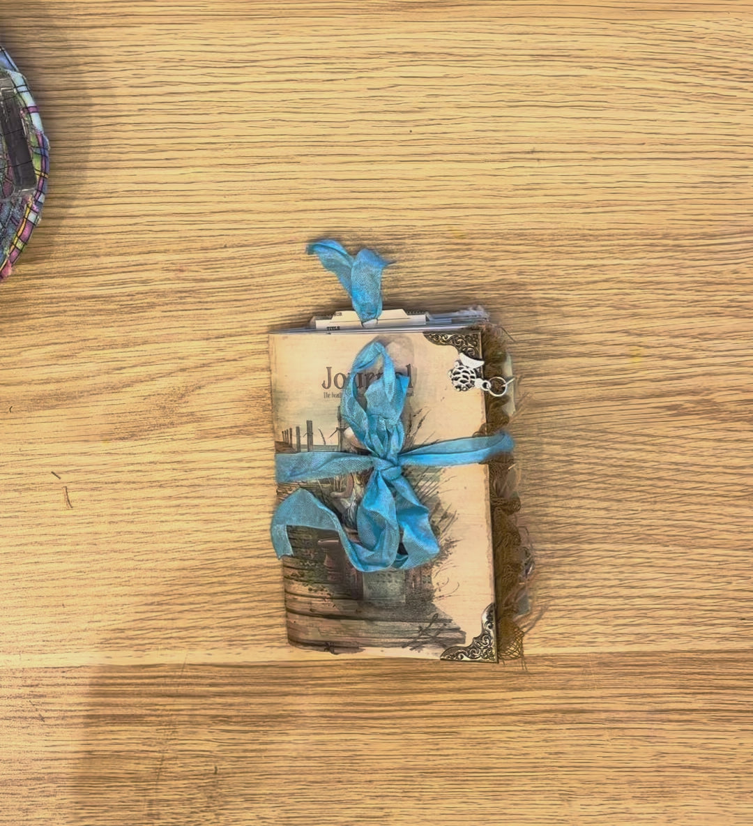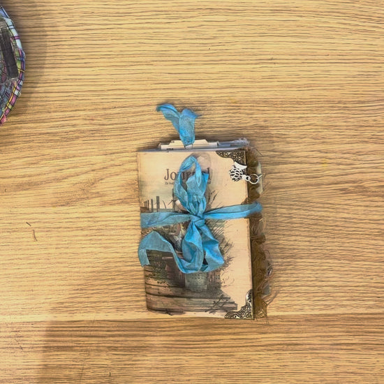 This mini journal is decorated with all kinds of page trims and charms. It has plenty of journaling area for a mini book too!